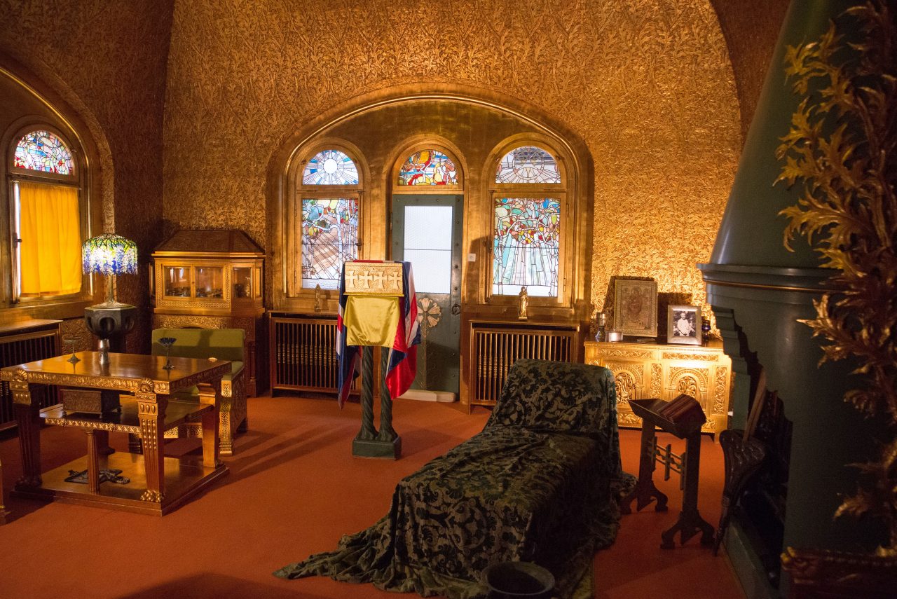 Construcţia cuprinde 99 de încăperi, mai puține faţă de Castelul Peleş care are 160. Camera de aur, denumită încăpere – pivot a palatului, a fost decorată cu pereţi din stuc aurit, cu frunze de ciulini, motiv drag reginei (emblema oraşului Nancy, capitala Art-Nouveau-lui, legat și de Scoţia, locul natal al Mariei), mobilierul este decorat cu elemente celtice şi bizantine desingn-ul fiind întregit de lustra de pe plafon, în forma unei cruci celtice.