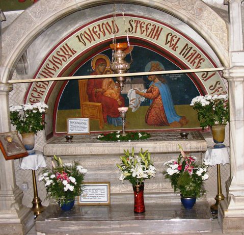 Daruri lăsate de doi dintre cei mai iubiţi ocrotitori ai României: Ştefan cel Mare şi Regele Mihai. Însetat de ţara lui şi de lumină, fostul monarh a mers să celebreze Paştele la Putna în 1992, la revenirea din exilul forţat care începuse în 1948.